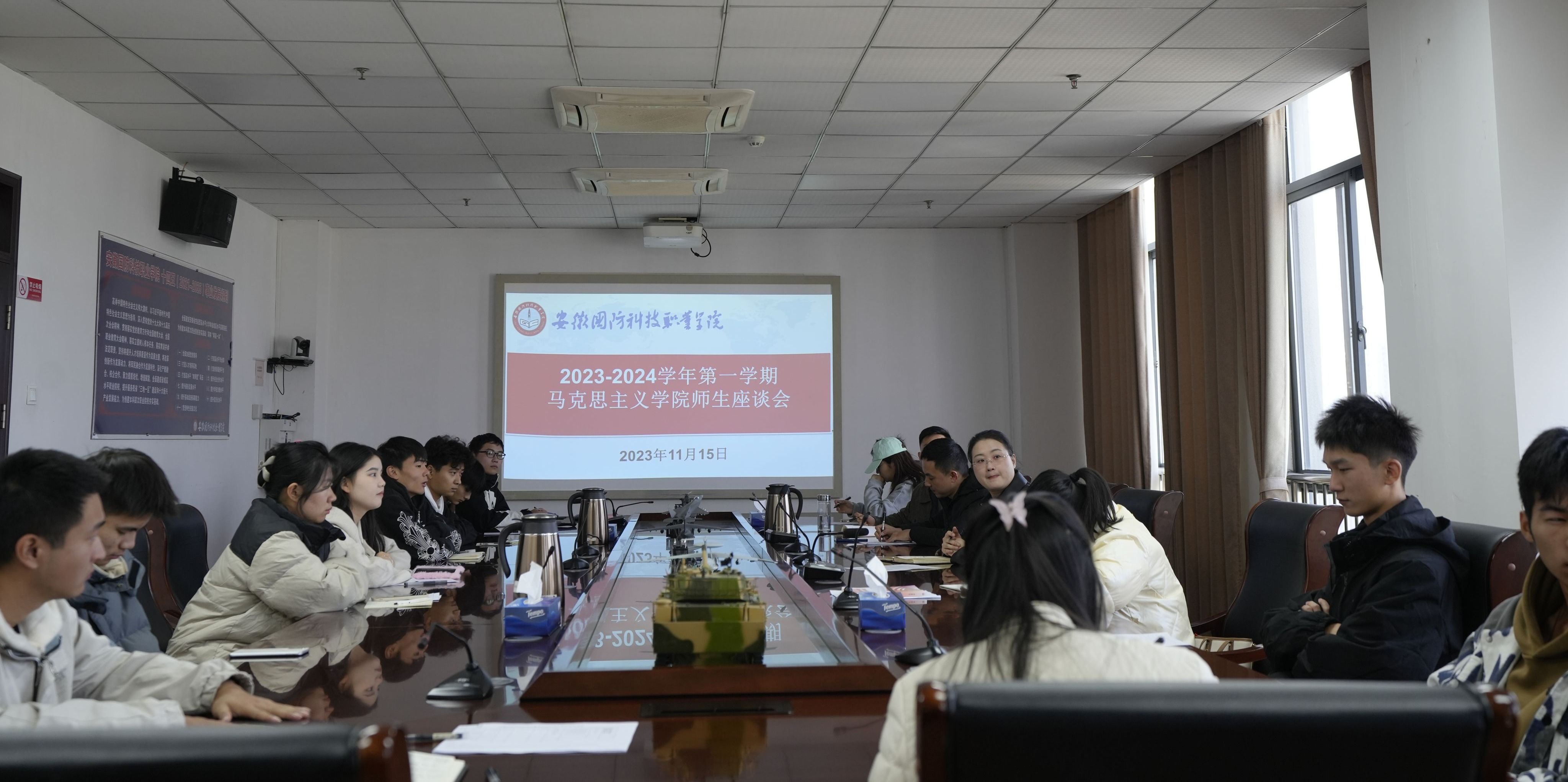 本网讯(马克思主义学院 武晓璐 李光俊)为及时了解学生课程学习效果和学习诉求,更好落实“以学生为本”的教育教学理念,进一步增强教学质量和教学管理工作的针对性和实效性,以及丰富学校对外窗口的内容和形式,马克思主义学院联合宣传(统战)部于11月15日在秉心楼11楼第一会议室召开了2023-2024第一学期师生座谈会。座谈会由马克思主义学院副院长聂勇主持,校党委委员、宣传部部长、马克思主义学院院长陈思出席并讲话,马克思主义学院各教研室主任、教师代表以及学生代表共同参加。