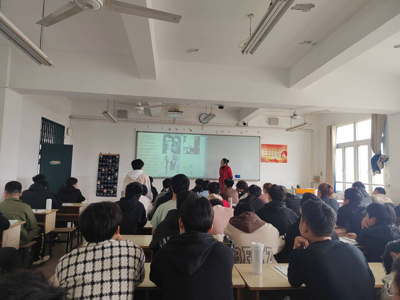 熊美艳老师于4月30日1-2节课在2教412教室为23机电4班、23电气2班同学主讲“建设社会主义文化强国”