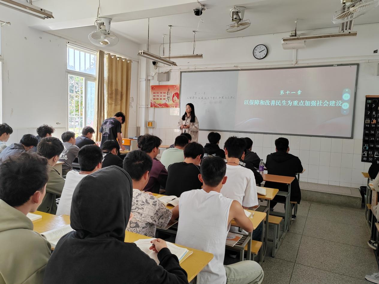 武晓璐老师于4月18日5-6节课在2教102教室为23汽车检测1班主讲“以保障和改善民生为重点加强社会建设”