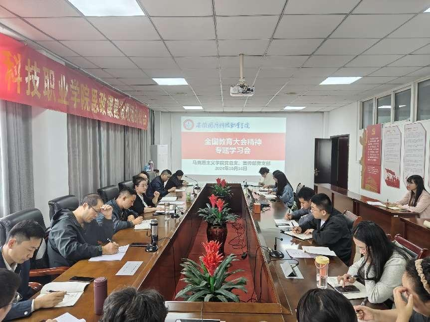 本网讯 为进一步加强党的创新理论武装,不断提升职工党员以改革创新精神主动谋划发展、推动工作的意识,10月16日下午,马克思主义学院党总支与宣传部党支部联合在知行楼403会议室召开集体学习会,专题学习贯彻党的二十届三中全会精神和全国教育大会精神。校党委委员、宣传部部长、马克思主义学院院长陈思、马克思主义学院党总支书记黄祥出席会议,马克思主义学院党总支和宣传部党支部全体党员按时参加学习会。