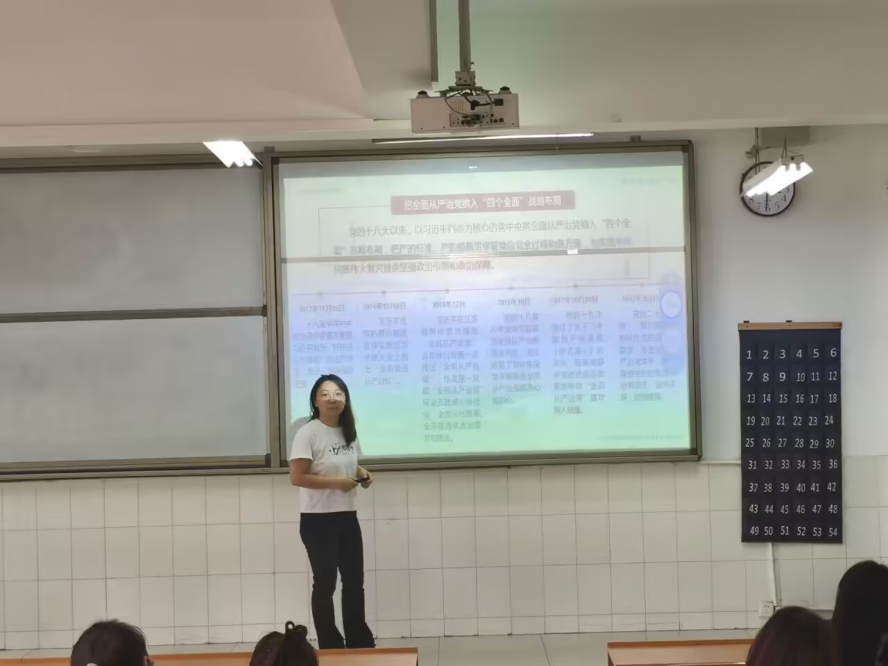 付玉梅老师于5月16日7-8节课在2教101为24汽车检测2班主讲“全面从严治党”