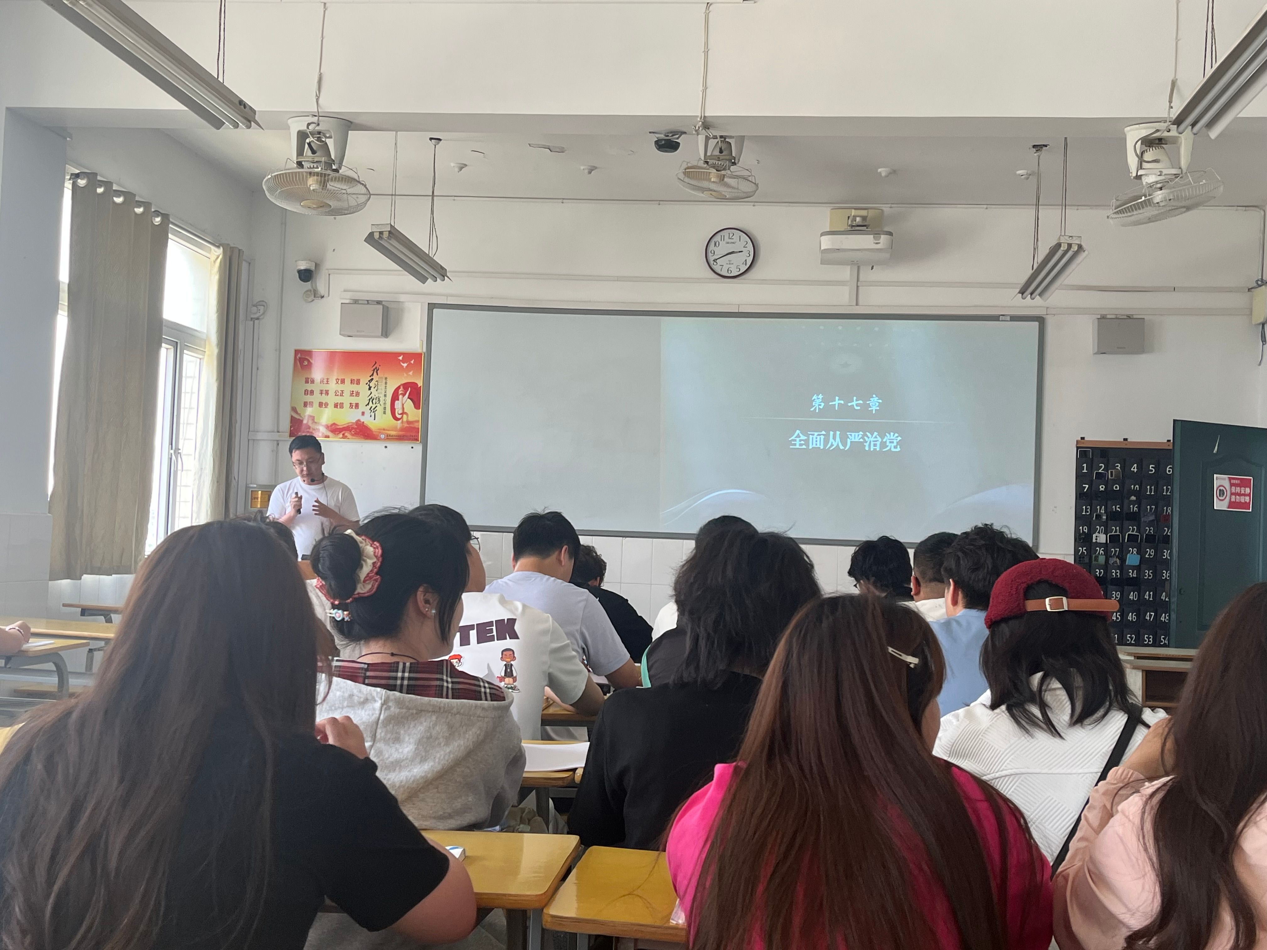 张广舟老师于5月8日5-6节课在2教106为24大数据与会计1、2班主讲“全面从严治党”