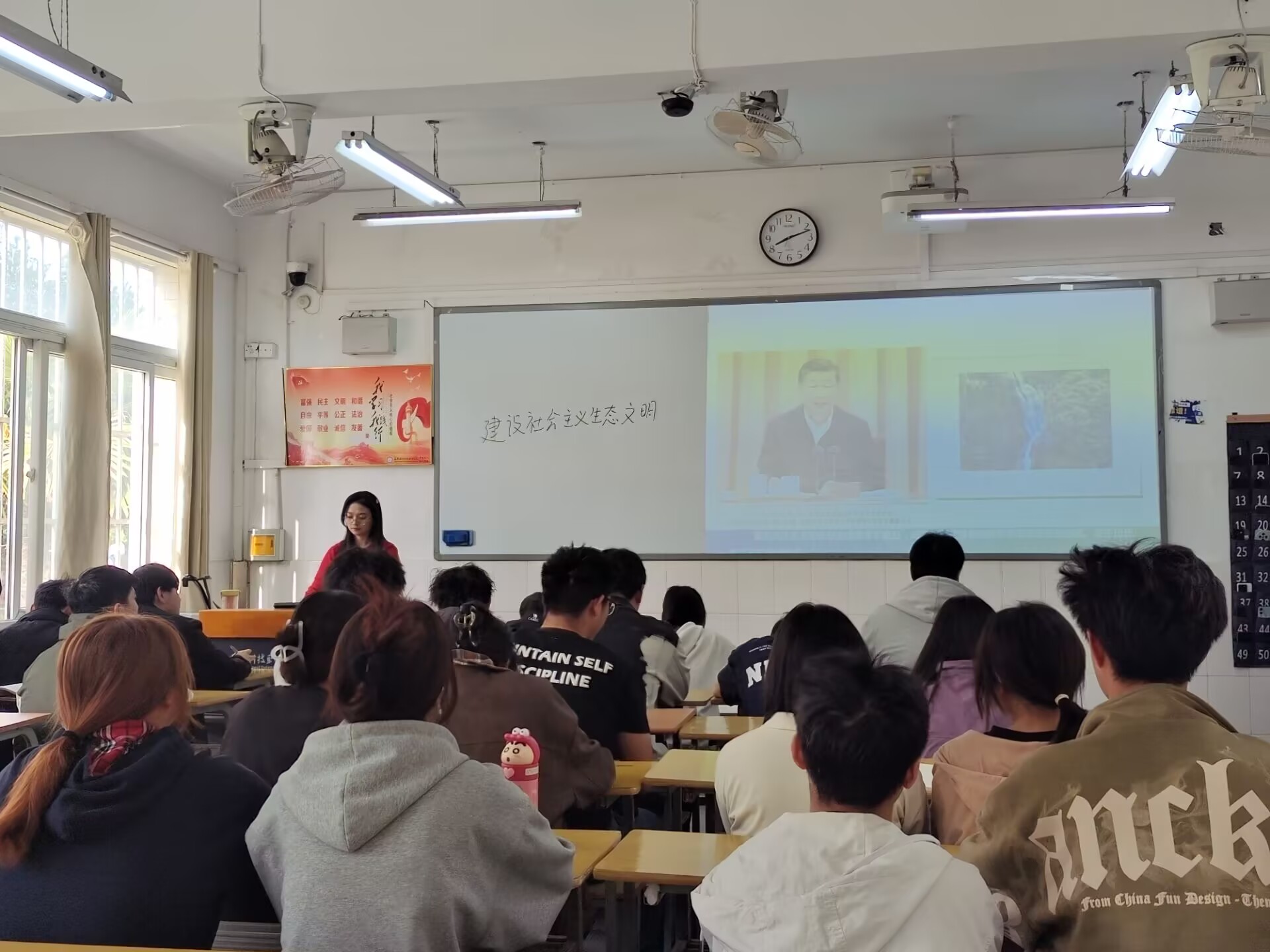 黄若兰老师于4月8日1-2节课在2教101教室为24网络3班主讲“建设社会主义生态文明”