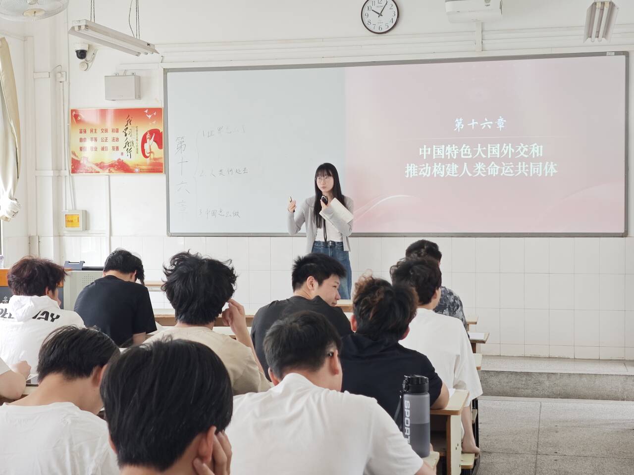 熊美艳老师于4月24日3-4节课在2教402教室为24飞机机电2班同学主讲“中国特色大国外交和推动构建人类命运共同体”