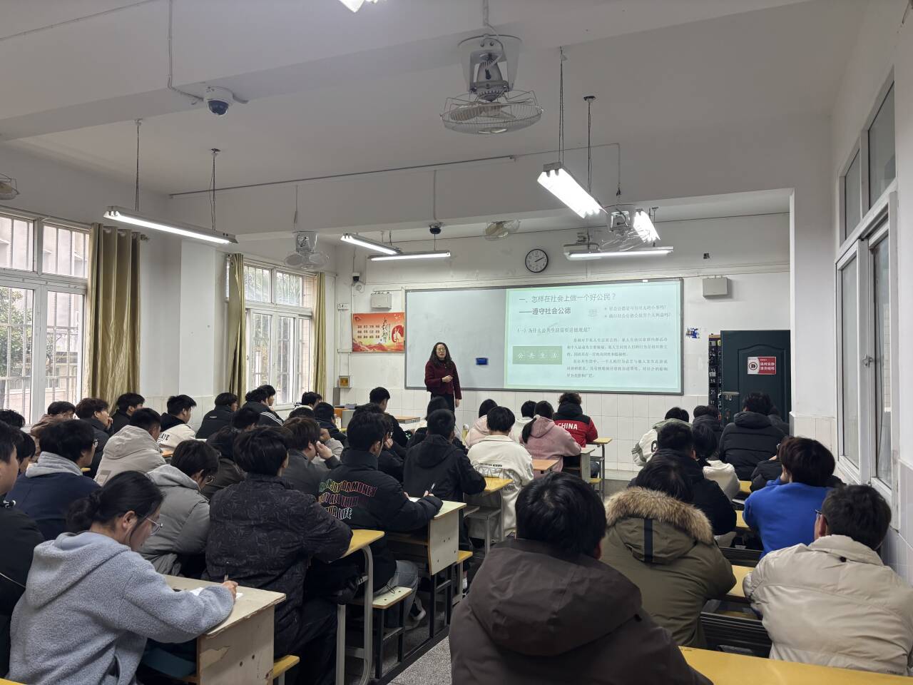(项华老师于11月10日7-8节在2教202为25智能建造1班学生讲授《遵守道德规范 锤炼道德品格》)