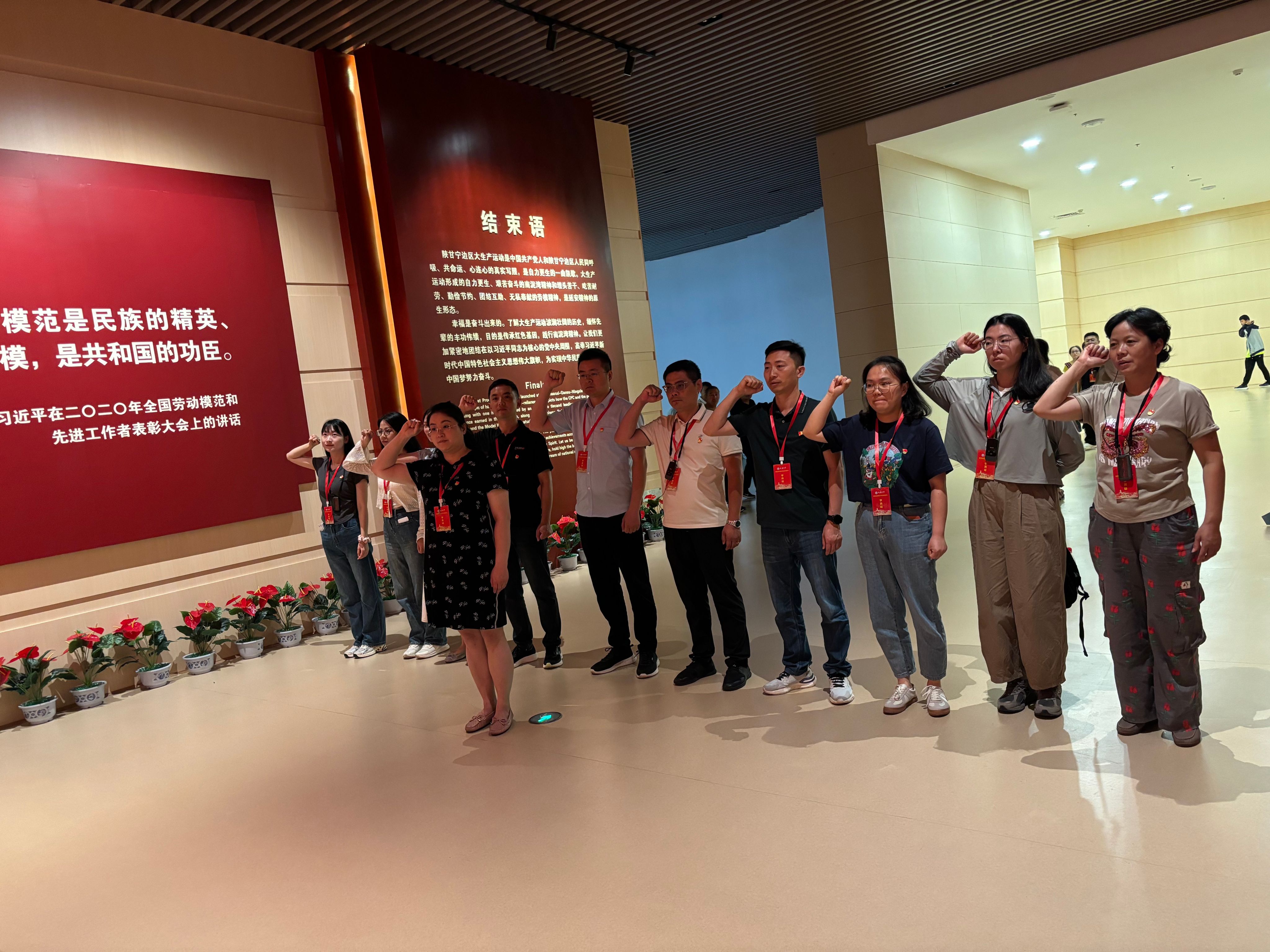在南泥湾大生产展览馆,支部党员通过一件件实物、一张张图片详细了解了在国民党反动派对陕甘宁边区及抗日根据地实行经济封锁的艰苦条件下,八路军一二〇师三五九旅旅长王震率部进驻南泥湾,实行屯垦,生产自救,把荆棘遍野、荒无人烟的南泥湾变成“处处是庄稼,遍地是牛羊”的陕北好江南的大生产运动经过。党员被“自力更生,艰苦奋斗”的革命精神深深感染,更加坚定了“只要思想不滑坡,方法总比困难多”的信念。随后,在支部书记宋秦的带领下,全体党员面向党旗重温了入党誓词,更加坚定了为共产主义奋斗的决心。
