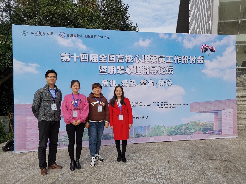 11月14日,由中国心理学会心理危机干预工作委员会和全国高校心理委员研究协作组主办,四川师范大学、全国高校心理委员工作平台承办的“第十四届全国高校心理委员工作研讨会暨朋辈心理辅导论坛”在四川师范大学召开。beat365思政部心理健康教育中心组织二级学院心理工作辅导员许凤麟、马士君、康垚、郑文兴等参加了此次大会。