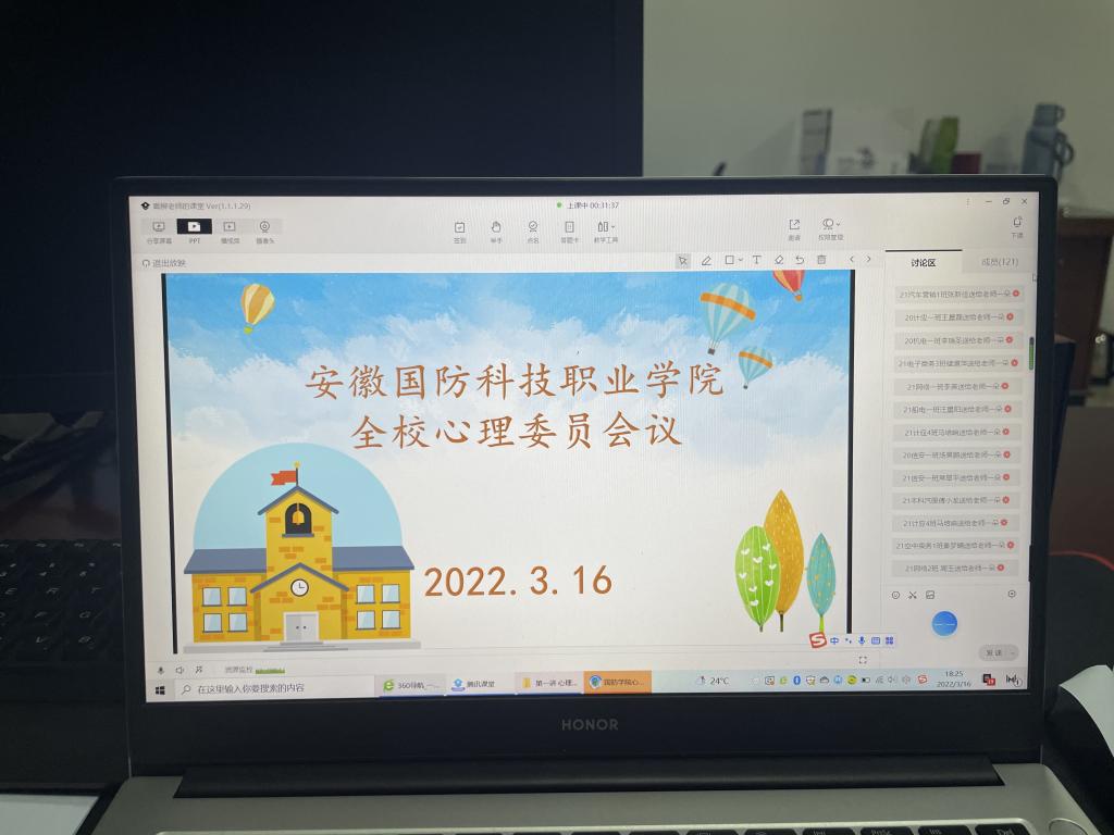 为了筑牢疫情期间的心理健康防线,减轻疫情所致的心理影响和心理伤害,保护学校全体师生的身心健康,促进校园和谐稳定,2022年3月16日下午2:00, 心理健康中心召开疫情期间心理辅导员专题会议。校党委委员、宣传部部长、马克思主义学院院长陈思、副院长聂勇参加了会议。会议由心理健康中心主任戴柳主持,心理健康中心费思佳老师、各二级学院心理辅导员参加了会议。