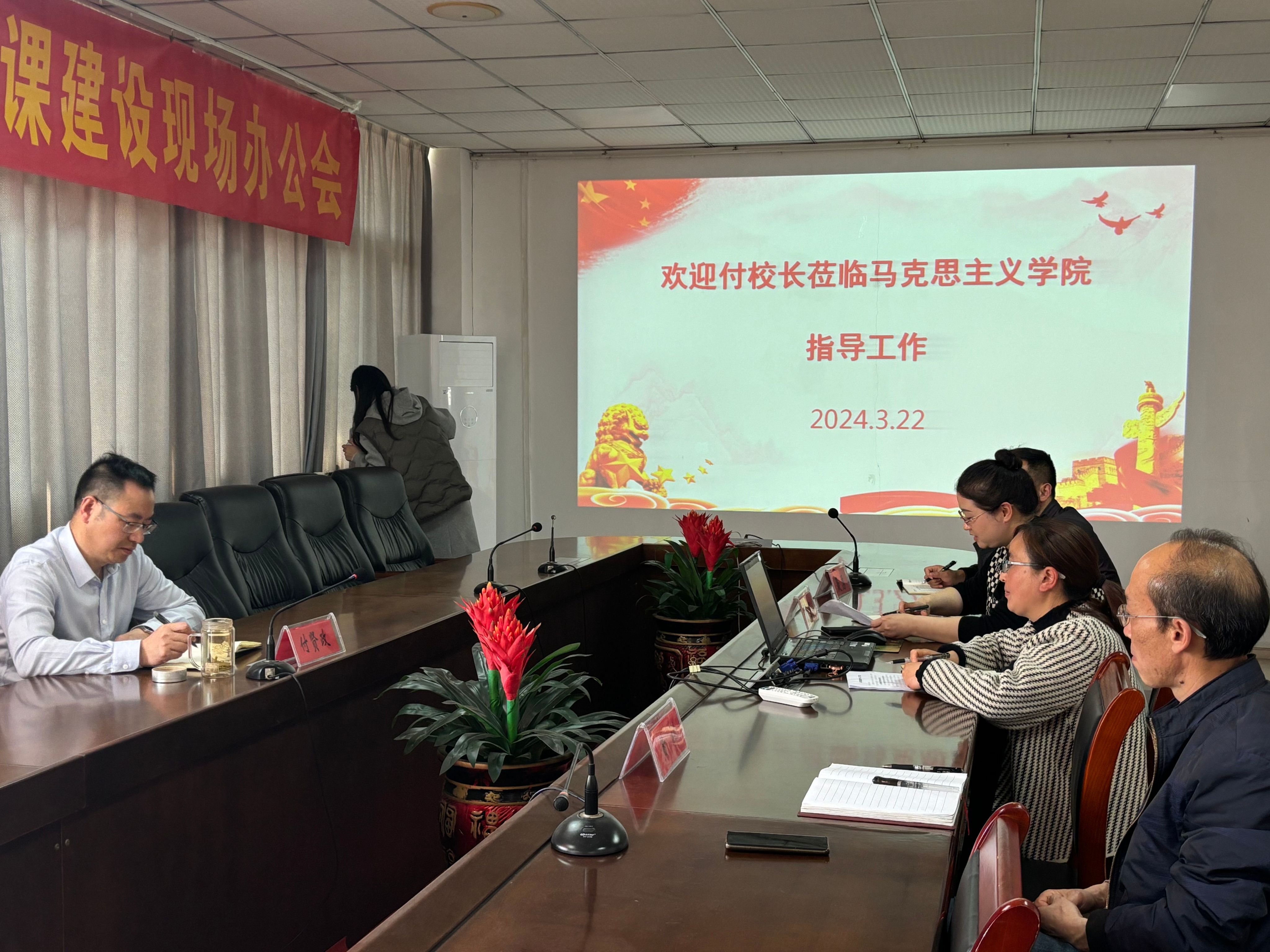 为了加强对学校心理健康工作的指导,完善心理健康体制机制建设,筑牢学校心理健康安全防线,2024年3月22日下午,副校长付贤政来到马克思主义学院调研心理健康工作。马克思主义学院党总支书记黄祥、院长陈思、副院长聂勇、心理健康专职工作人员戴柳、费思佳参加了调研座谈会。