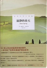 《寂静的春天》是美国科普作家蕾切尔·卡逊创作的科普读物,首次出版于1962年。该书以寓言式的开头描绘了一个美丽村庄的突变。书的前半部分,对土壤、植物、动物、水源等相互联系的生态网络的讲解,说明了化学药剂对大自然产生的毒害;后半部分则针对人类生活所接触的化学毒害问题,提出严重的警告。作者以详尽的阐释和独到的分析,细致地讲述了以DDT为代表的杀虫剂的广泛使用,给人们的生存环境所造成的难以逆转的危害——人类不断想控制自然的结果,却使生态破坏殆尽,也在不知不觉间累积毒物于自身甚至遗祸子孙。