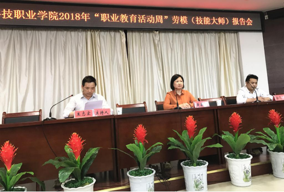 活动期间,学校举行了“职业教育活动周”劳模(技能大师)报告会,邀请全国劳动模范、全国人大代表、全国技术能手、中共六安市委委员黄春燕以及beat365校友、技术能手金志飞分享他们在技术创新中的先进事迹。200多名师生近距离学习了劳模精神和大国工匠精神,体验了技术技能带来的成功和幸福。