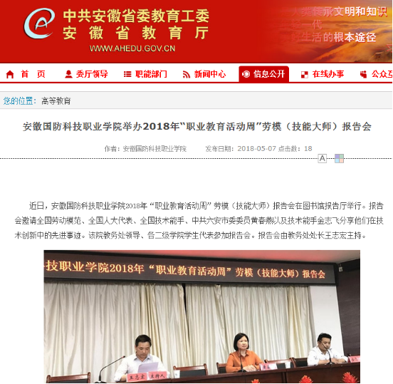 活动开展以来,学校通过校外媒体、官方网站、微博、微信等平台,实时报道职教周活动开展情况,大力宣传职教成果,展示职教亮点和典型,弘扬大国工匠精神,积极营造“劳动光荣、技能宝贵、创造伟大”的时代氛围。