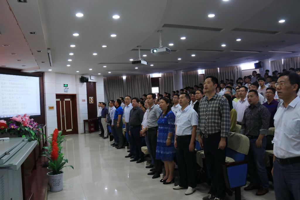 会上,参会人员全体起立,激情饱满,共唱国歌,在国歌奋进的词文和曲调中重温中华民族苦难深重的历史和中华先烈自强不息的战斗精神,表达对祖国的热爱、祝福和捍卫国家、民族尊严的决心。在激情昂扬的《义勇军进行曲》中,此次报告会圆满落下帷幕。