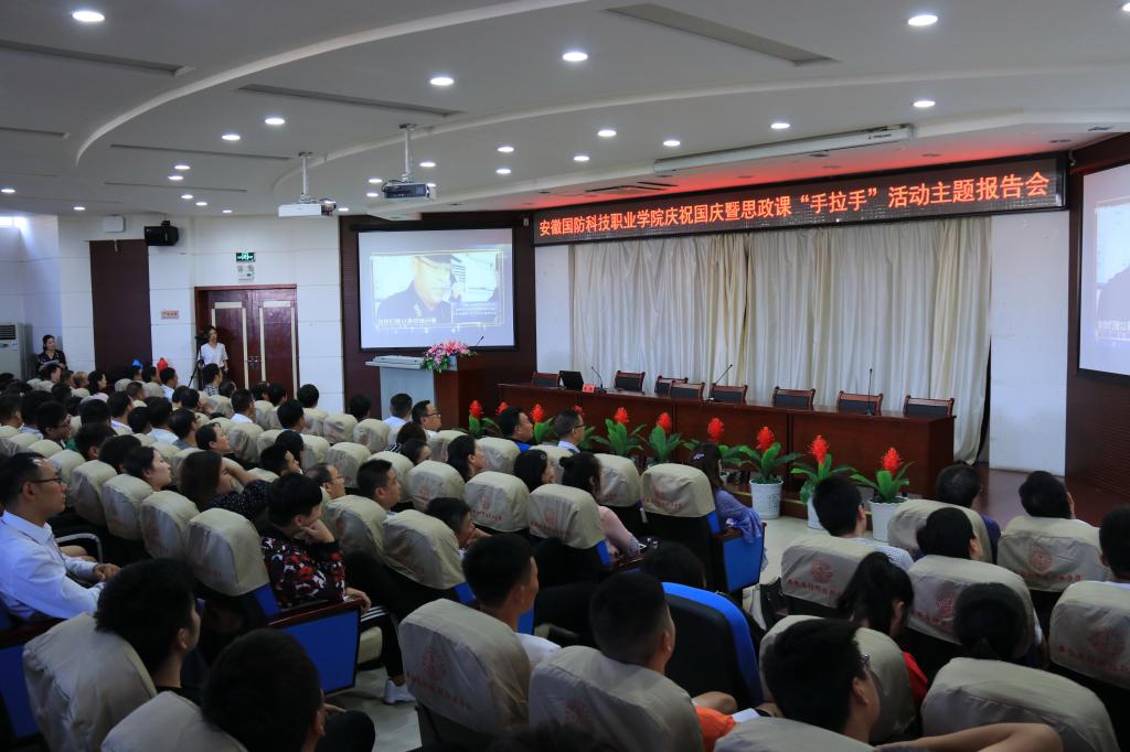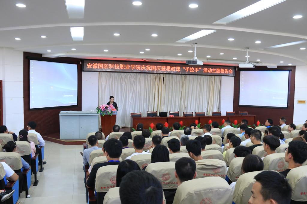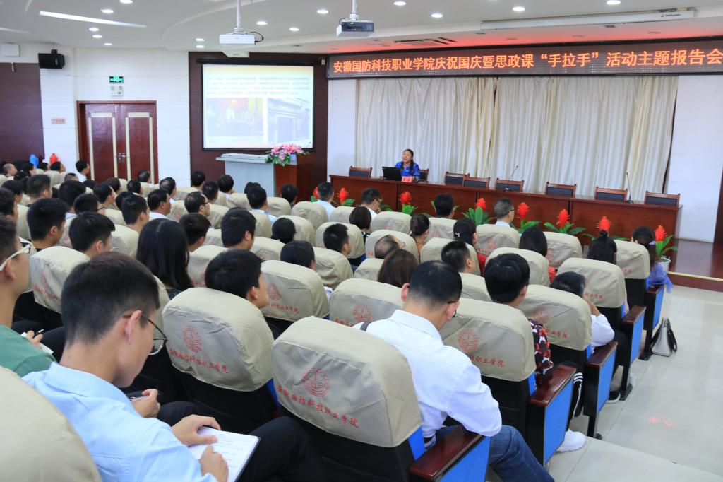 本网讯 为深入学习贯彻习近平新时代中国特色社会主义思想和党的十九大精神,积极培育和践行社会主义核心价值观,大力弘扬中华民族优秀传统文化,充分发挥民族传统节日思想熏陶和文化教育功能,结合2018年六安城区高校思政课“手拉手”共建活动,由校党委宣传部主办的“庆祝国庆,祝福祖国”主题活动暨思政课“手拉手”主题报告会于9月29日下午在图书馆报告厅隆重召开。