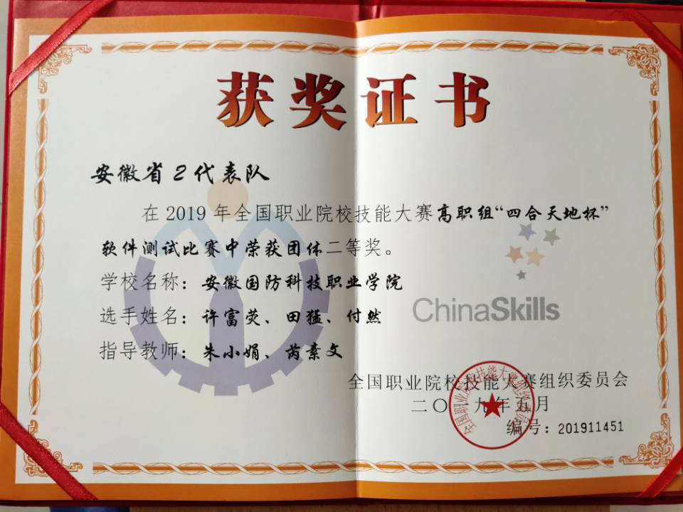 本网讯 日前,2019年全国职业院校技能大赛“软件测试”赛项及“云计算技术与应用”赛项分别在在西安航空职业技术学院和安徽机电职业技术学院落下帷幕。beat365信息技术学院老师朱小娟、芮素文指导的由软件技术专业学生许富荧、田猛、付然组成的竞赛团队,信息技术学院老师周创、雷惊鹏指导的由张秀全、胡建新、盛乐组成的竞赛团队,不畏强敌、奋勇拼搏,经过激烈角逐,分别荣获“软件测试”赛项全国二等奖及“云计算技术与应用”赛项全国二等奖。