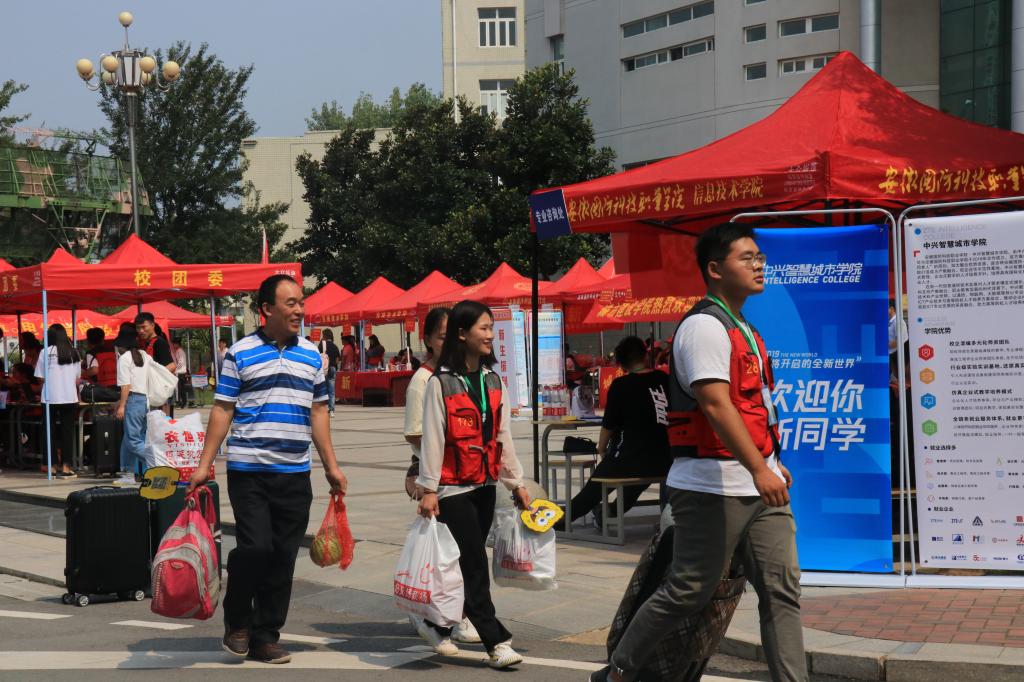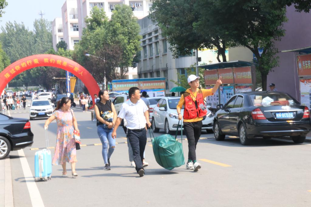“接过你的行囊,我们就是一家人”,志愿者为新生和家长贴心服务,是校园里一道亮丽的风景线