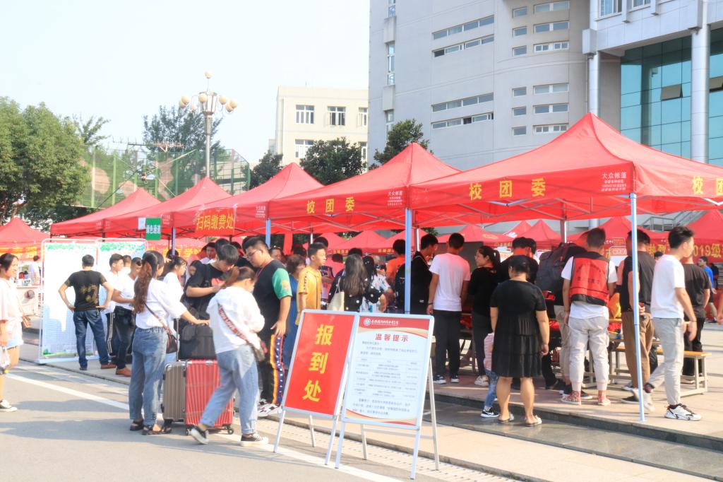 新生接送专车满载着一批批2019级新生进入美丽的校园,等待他们的是热情洋溢的笑脸。集中办理报到手续,为新生和家长耐心答疑解惑,向新生介绍学校发展情况,为家庭经济困难学生开通“绿色通道”,为家长提供休息室和热水......周到体贴的“一站式”服务给新生送去了家的温暖,给家长增添了一份放心。