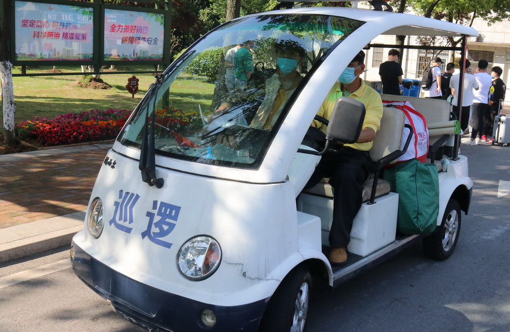 学校巡逻车积极为返校学生搬运行李
