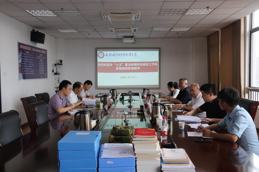 本网讯 根据六安市开展“七五”普法终期评估验收工作的安排,8月12日下午,六安市“七五”普法终期评估验收第四工作组副组长毛方余、徐光明一行来beat365检查指导。汇报会在秉心楼第一会议室举行,校长李麟书,校党委委员、宣传部长、思政部主任袁旗,以及宣传部相关人员参加了会议。