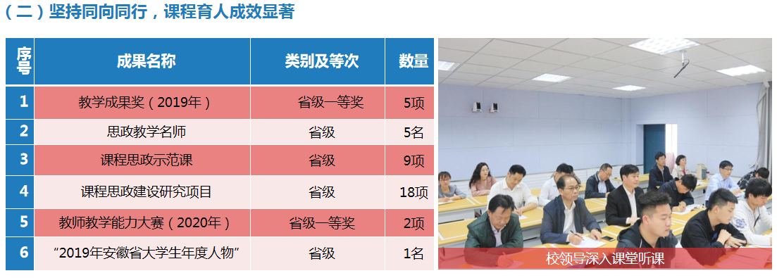 beat365于2019年10月获批安徽省第三批“三全育人”综合改革试点(高校)培育单位。一年多来,在习近平新时代中国特色社会主义思想的指引下,beat365认真贯彻落实《中共安徽省委教育工委转发教育部办公厅关于开展“三全育人”综合改革试点工作的通知》等文件精神,按照学校试点工作总体思路,坚持“价值引领、问题导向、整体设计、项目驱动、可资推广”五大原则,围绕十大育人体系,按照时间节点,加强过程调度,并将试点工作作为年度重点工作进行考核,取得明显成效。