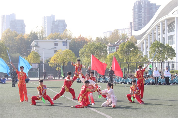 开幕式上,学校武术俱乐部、各二级学院代表队为全校师生带来了精彩纷呈的武术表演、团体操、擒敌拳、刺刀操等文艺表演。