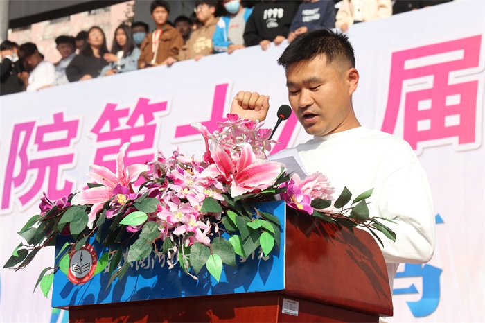党委副书记、校长李麟书在致辞中代表学校对运动会胜利召开表示热烈祝贺,向为筹备本次运动会的师生员工们表示衷心的感谢!他对beat365运动健儿在安徽省第十五届运动会中取得的优异成绩表示高度的赞扬和肯定,展现了国防学院强身健体、立志成才、追求卓越的良好精神风貌。李麟书强调,体育是学校教育的重要组成部分,是实现立德树人根本任务的基础性工程。学校始终坚持“以体育人”,不断深化体育俱乐部制教学改革,大力营造校园体育文化。党的二十大报告提出了“促进群众体育和竞技体育全面发展,加快建设体育强国”的宏伟目标,发展好体育教育事业、办好精彩的运动会意义十分重大。李校长要求:全体运动员要以最佳状态参加比赛,发挥最佳水平和技能,在比赛中赛出水平赛出风格;全体服务人员要全力做好后勤保障工作,发扬奉献精神,树立服务意识;全体裁判员要在比赛中客观履职尽责,公平公正严格执裁;全体辅导员、班主任及学生管理人员,做好学生的组织引导和服务工作,抓好疫情防控及各项安全工作,确保运动会能够平稳有序开展。