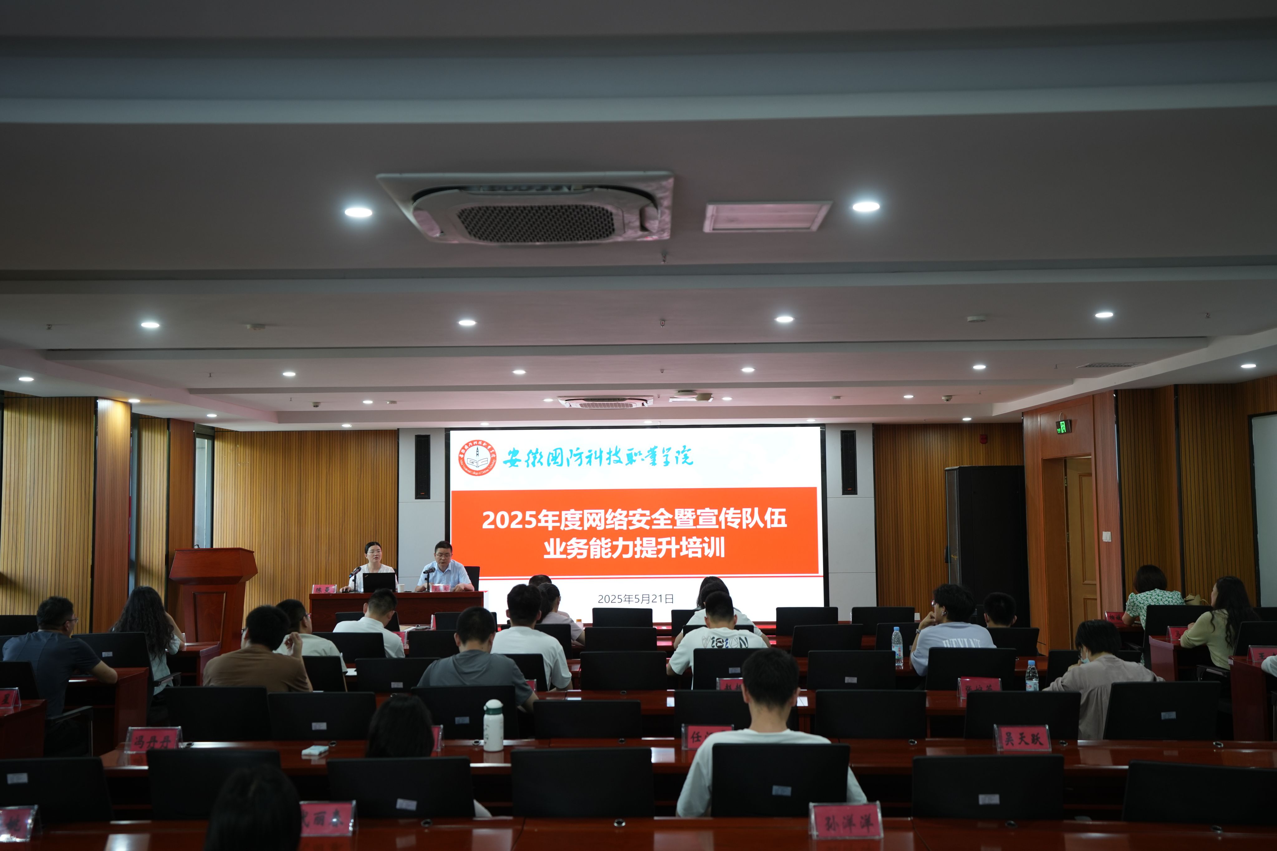 本网讯 为进一步加强校园网络安全和宣传工作,提升网络舆情应急处置能力。5月21日下午,宣传部在产教融合中心第一报告厅举办了2025年度网络安全暨宣传队伍业务能力提升培训会。学校各部门、二级学院信息员和社团指导教师参加培训,会议由宣传部副部长朱其阳主持。