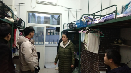 在检查中,检查组仔细检查了宿舍安全卫生情况,并与学生亲切交流,了解同学们生活学习、安全卫生等方面情况,叮嘱同学们要注意寝室卫生,在春季传染病高发季节做好宿舍卫生的清扫,同时注意宿舍用电安全,杜绝宿舍内使用、存放各种违规电器,排除各类安全隐患。