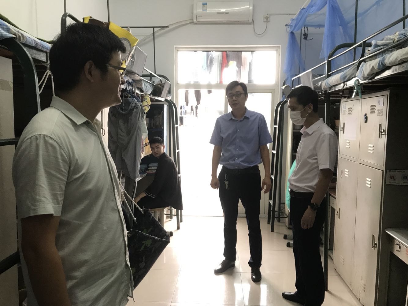 根据学校开学疫情防控“两案八制”相关工作部署,为进一步加强学生宿舍安全教育和管理,消除安全隐患,共同营造安全、文明、卫生的宿舍环境。6月5日下午,学生处(安全保卫处)全体工作人员及各学院辅导员成立检查小组,深入学生宿舍,进行安全卫生大检查。