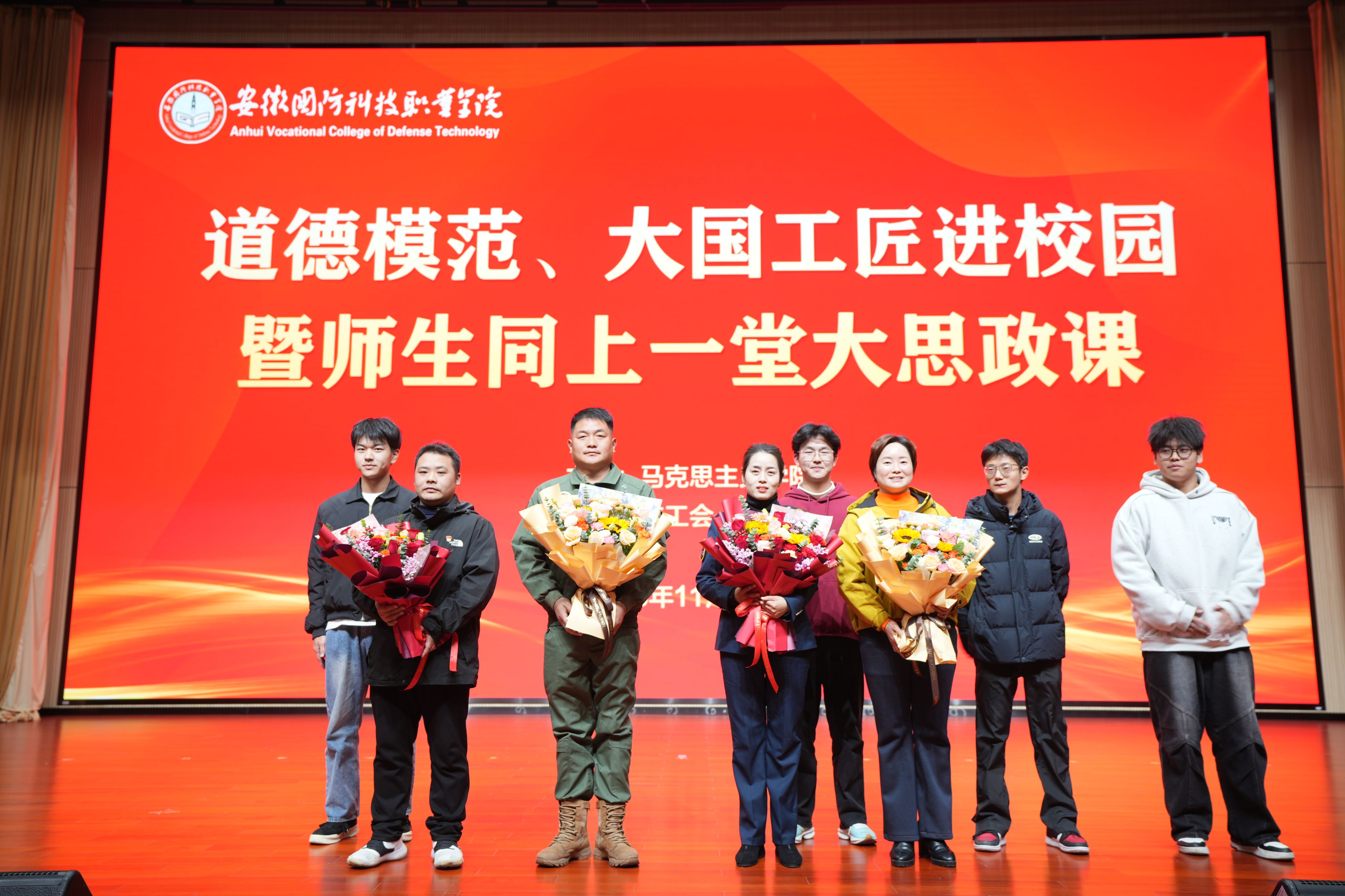 本网讯(马克思主义学院 武晓璐 聂勇)为深入学习贯彻党的二十届四中全会精神,推进学校“大思政课”建设,11月21日,学校在产教融合中心报告厅举办了“道德模范、大国工匠进校园”暨“师生同上一堂大思政课”活动,将思政小课堂同社会大课堂深度融合。