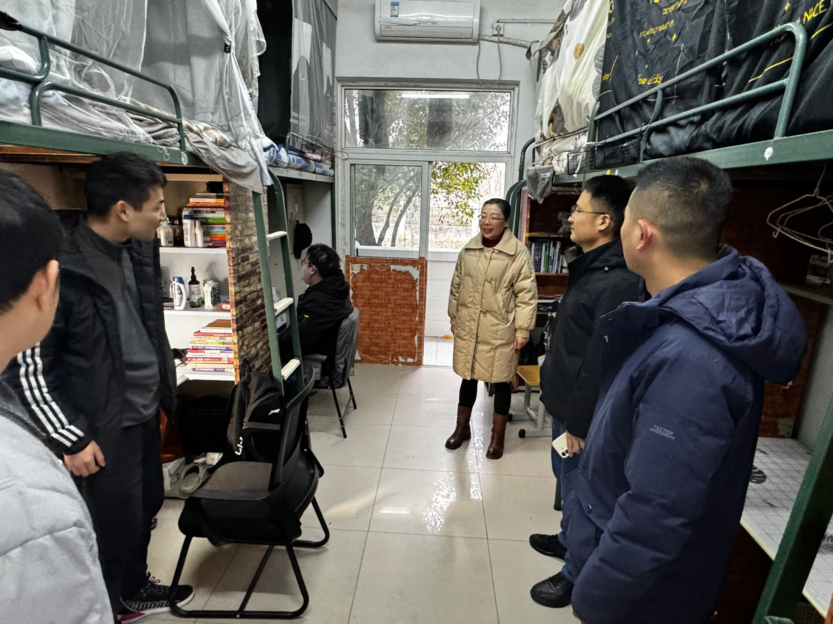 走访过程中,老师们仔细查看门窗、水电设施等是否存在安全隐患,同时提醒同学们要时刻紧绷安全这根弦,自觉遵守宿舍安全管理规定,养成良好的生活习惯,共同维护宿舍的安全与整洁,杜绝各类宿舍消防安全事故的发生。在与学生交流时,学院老师主动询问大家的新学期安排、学习计划以及生活中遇到的困难,认真倾听同学们的心声。