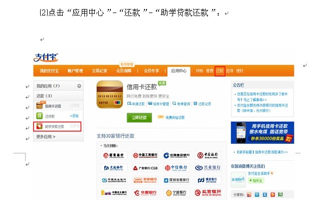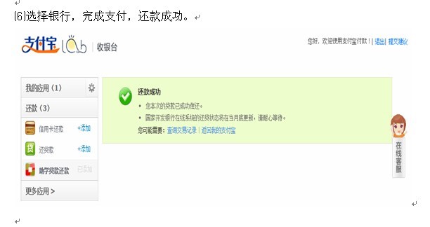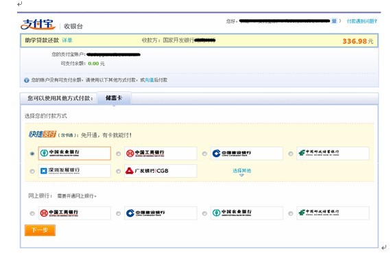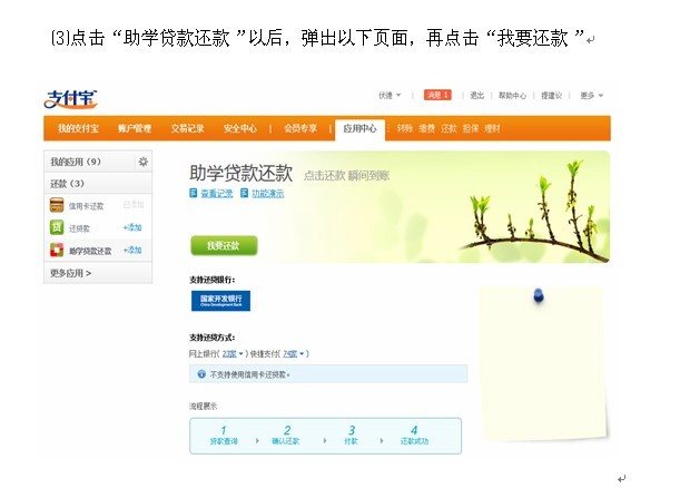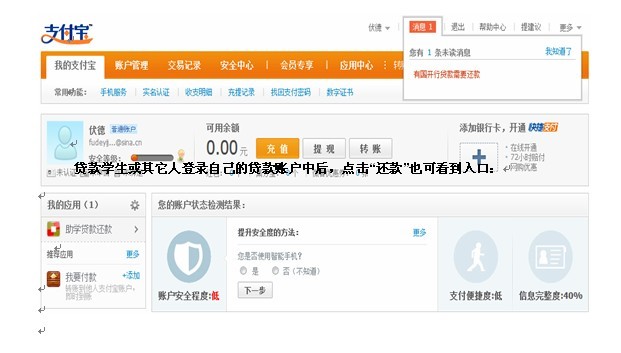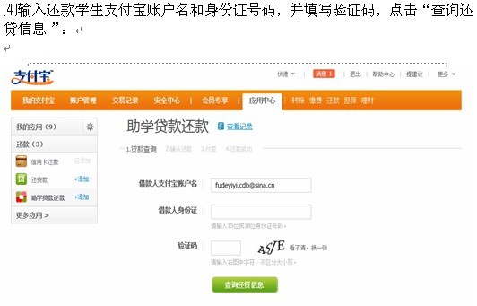 ※支付宝还款功能:目前使用任一支付宝账户都可以为借款学生支付宝还款。具体流程: