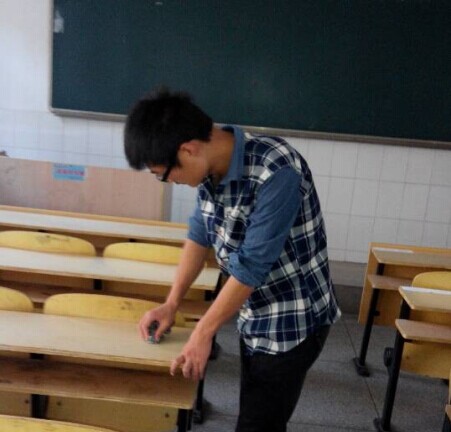 勤工俭学同学们在清除桌面上的污迹