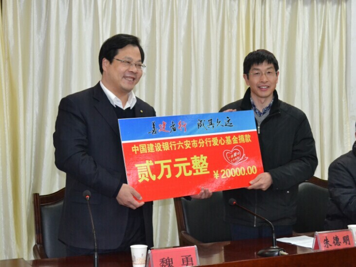 中国建设银行六安分行爱心助学捐赠仪式在我院隆重举行