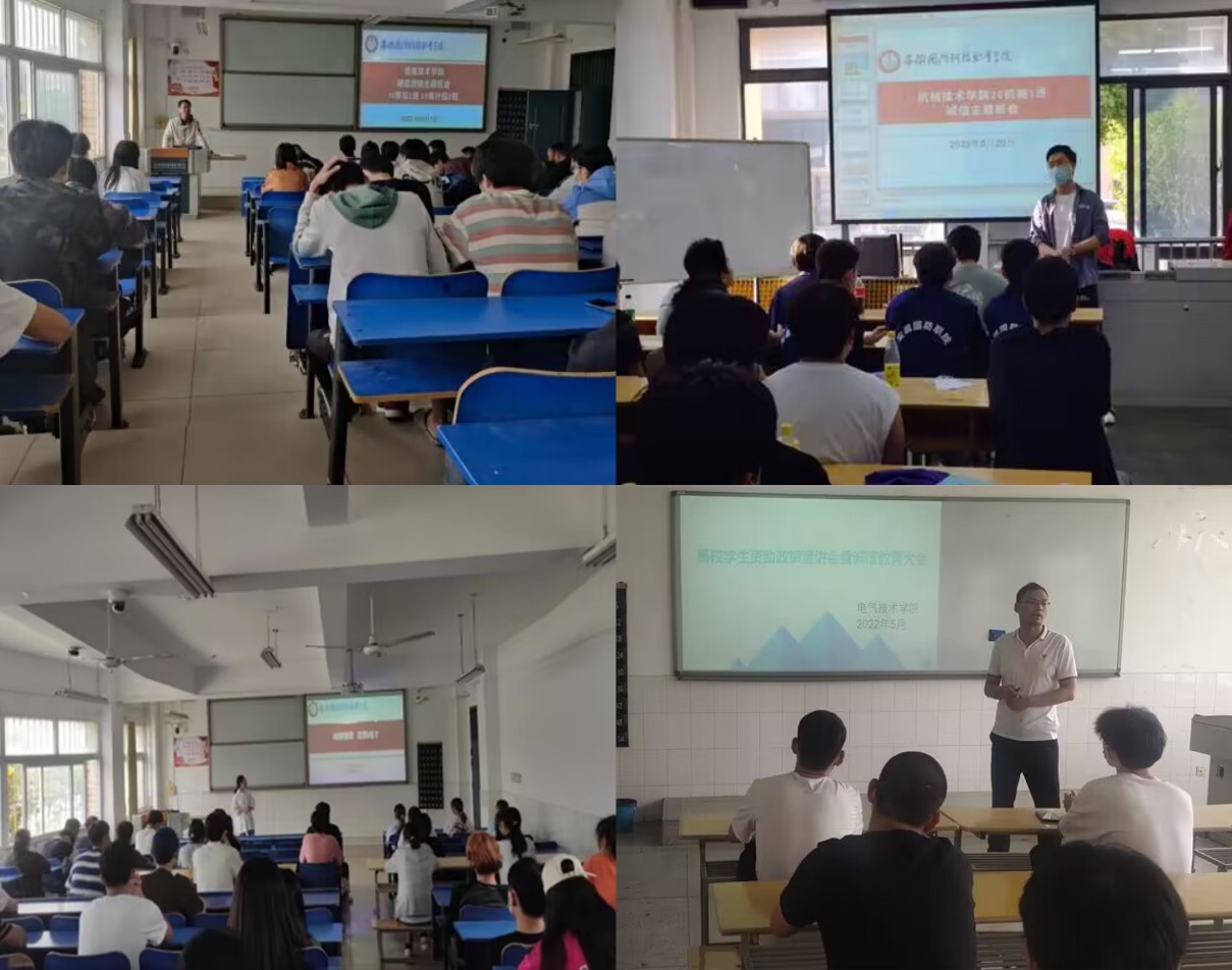 开展了“资助政策两节课”活动。新生入校后,各二级学院以入学教育、班会等形式给学生宣讲国家及学校的各项资助政策及具体的申请流程。在学生毕业离校前,通过诚信教育讲座、主题班会等多种形式,讲解国家助学贷款有关政策、金融防诈骗、征信知识等,广泛动员贷款毕业生按时还款,帮助广大贷款学生树立诚信信念,帮助毕业生同学做好毕业确认等工作。资助政策“两节课”是落实国家资助政策宣传工作的重要举措。开展此活动,旨在让更多学生了解国家与学校的相关学生资助政策,有利于学生明确自身应享受的权利与应承担的义务,感受到国家与学校对学生的关心关爱,为今后大力推进资助育人工作,奠定了坚实的基础。