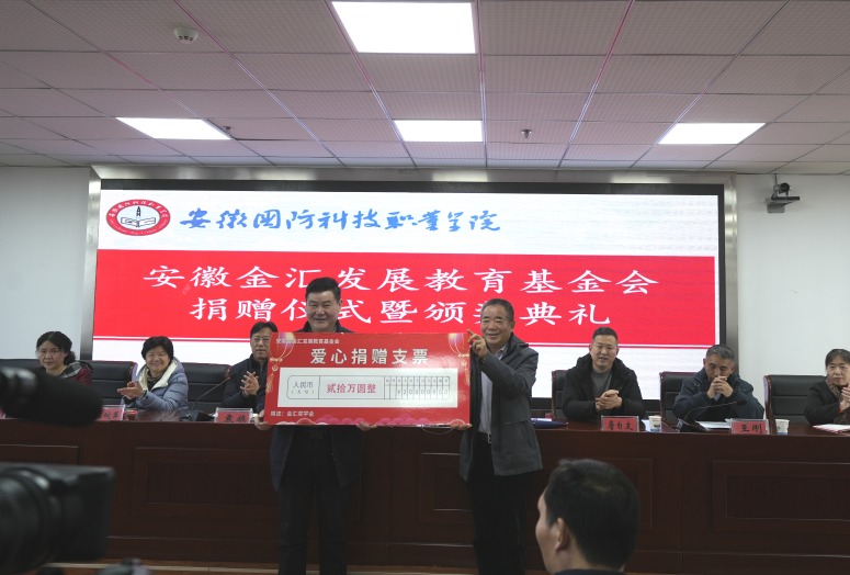 1月8日下午,安徽金汇发展教育基金会捐赠仪式暨金汇奖学金颁奖典礼在beat365秉心楼12楼会议室举行。校党委书记余嗣元、金汇基金会理事长王进、中国人民银行六安分行纪委书记詹自友、金汇基金会副理事长梁皖萍以及基金会嘉宾王刚、黄世芳、许敏、钟波等,校学工部、各二级学院领导,校资助中心工作人员以及获奖学生代表等参加活动。仪式由校党委委员、副校长袁旗主持。