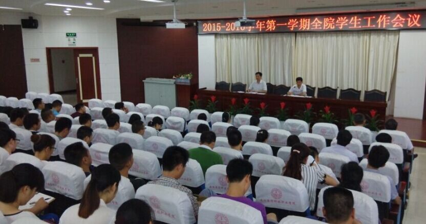 9月5日上午,我院在图书馆报告厅召开了2015-2016学年第一学期全院学生工作会。院党委副书记、纪委书记朱德明参加会议并做重要讲话,会议由学生工作处处长孙良平主持,各系党总支书记、副书记、辅导员班主任以及学生工作(安全保卫)处、团委工作人员参加会议。