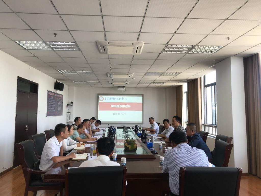 9月30日上午beat365在线唯一官网在综合楼11楼第一会议室召开学风建设推进会,学生处(安全保卫处)相关负责人以及校团委、各二级学院主要负责人参加了会议,校党委委员、宣传部部长、思政部主任袁旗主持此次会议。