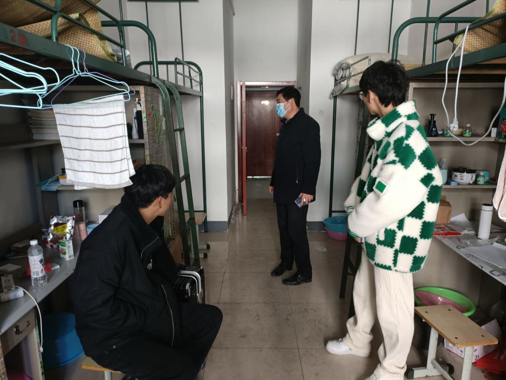 校党委书记余嗣元深入学生宿舍,与学生亲切交谈,了解学生返校当天宿舍清扫及通风情况