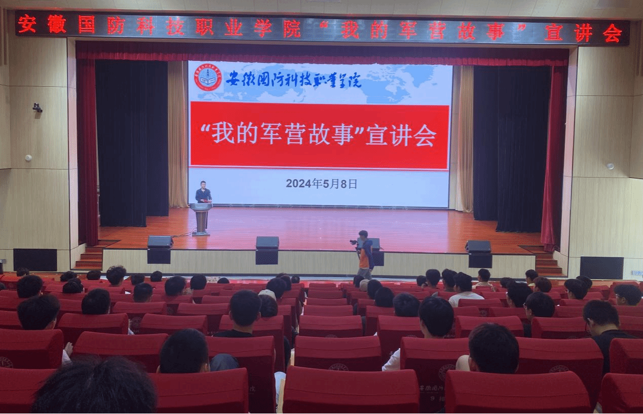本网讯(学生处 孙洋洋)5月8日下午,学工部在产教融合中心多功能报告厅组织开展大学生应征入伍宣传教育系列活动之“我的军营故事”宣讲会。大学生退役军人协会、国旗护卫队、国防预备班全体成员共计200余人参加活动。宣讲会由大学生退役军人协会成员许佳乐主持。