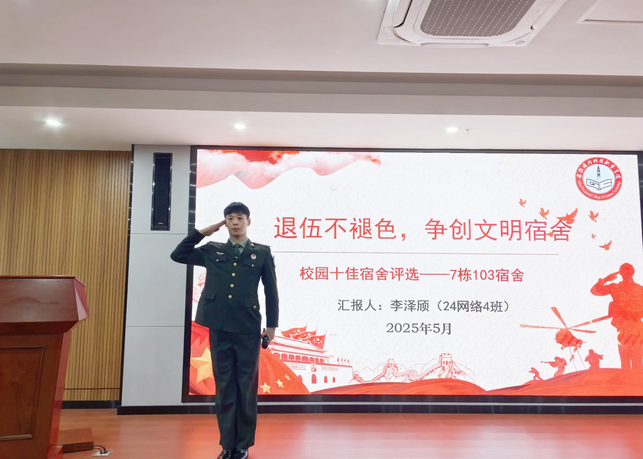 参评宿舍学生在学校“十佳标兵宿舍”评选现场展演汇报