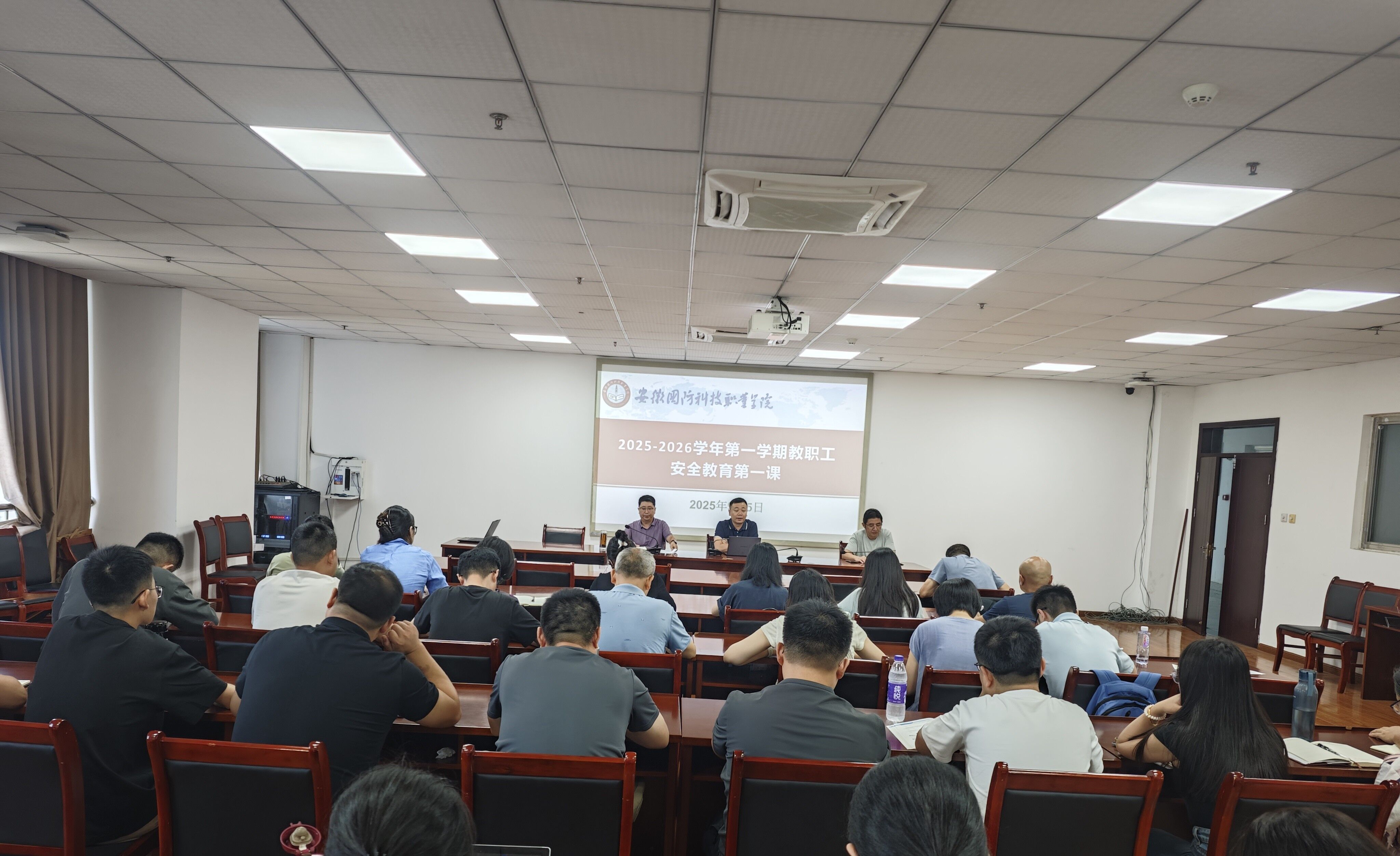 会议最后,王胜开展新学期教职工安全专题教育,强调安全是学院高质量发展的“压舱石”、“护身符”和“生命线”,需摆在首位抓实抓细,既要培育技能人才,更要守护师生安全环境,号召教职工以高度责任感守护校园平安,为高质量发展保驾护航。