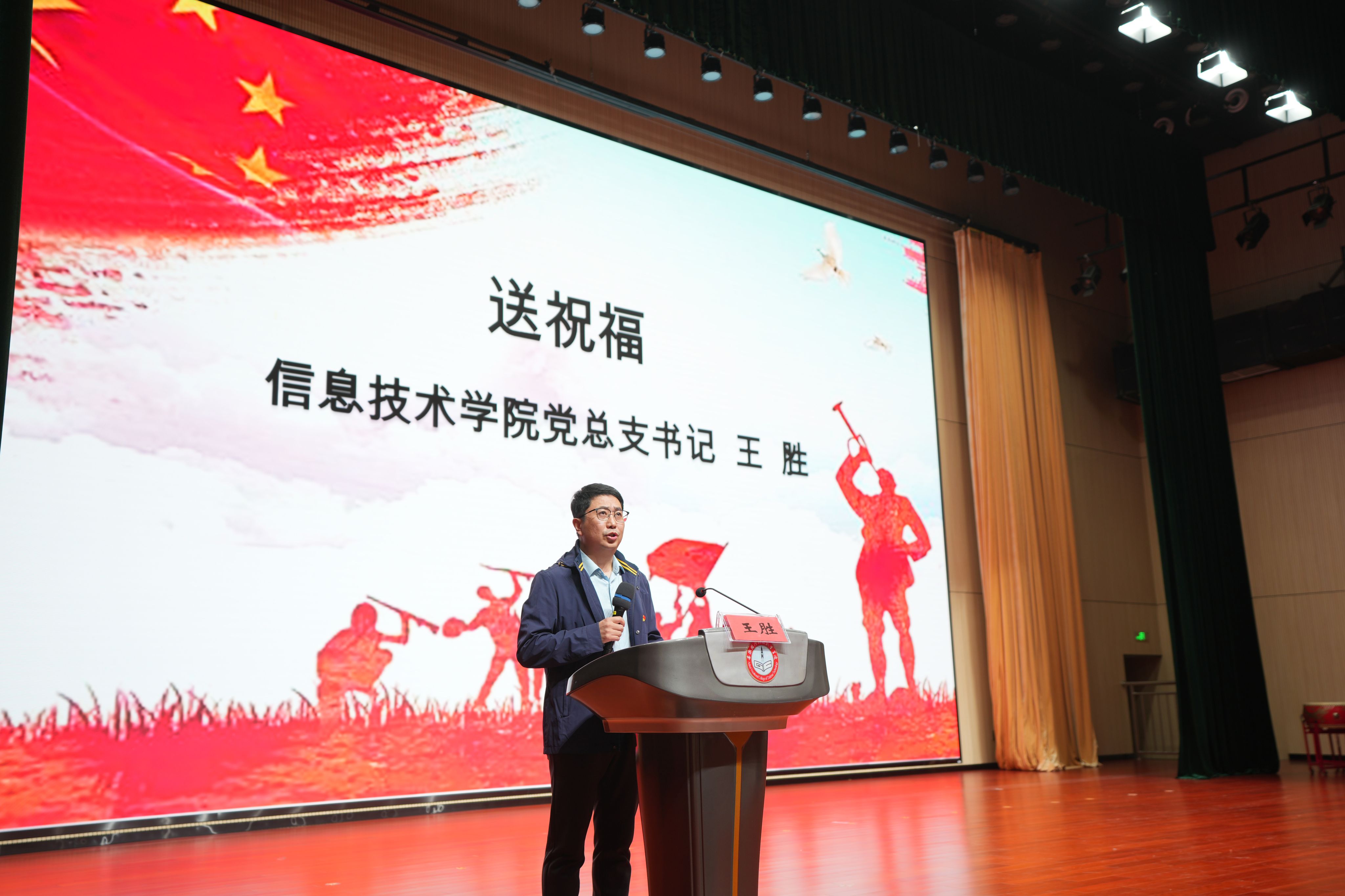 赠送祝福,寄语青春之志。信息技术学院党总支书记王胜向现场的全体师生送出一份美好的祝福与期许。希望全体师生以此次道德讲堂为契机,在网络空间守牢初心底线,在求知路上锤炼过硬本领,在青春赛道上勇担时代使命,自觉传承家国情怀、厚植红色基因、弘扬中华美德,努力成长为“有理想、善用网、敢担当、能奋斗”的新时代建设者,为推进中国式现代化贡献青春智慧和力量!