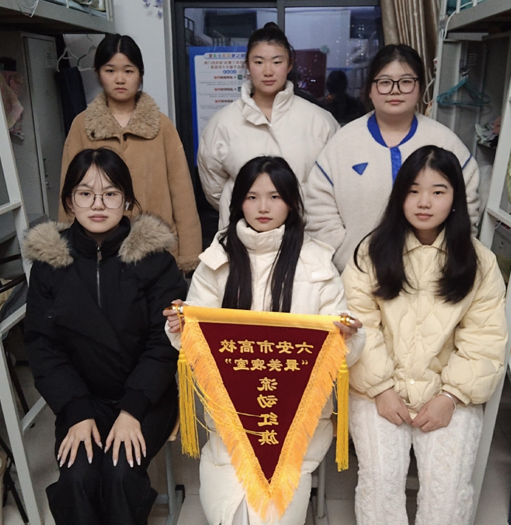 在学院初评阶段,评审工作严格秉持公平、公正、公开原则,从寝室卫生状况、内务规范程度、文化特色营造、团队协作精神等维度开展综合考评。最终,10栋515寝室凭借“互助共进”的鲜明理念脱颖而出:寝室成员共同制定并严格遵守寝室公约,定期开展学习交流活动,凝聚起团结向上的优良氛围,其整体风貌与建设成果精准契合活动“培育优良校园文化”的核心目标。