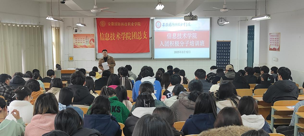 本网讯(学生通讯员 卢乐妍)为深入学习贯彻习近平新时代中国特色社会主义思想和党的二十大和二十届三中全会精神,进一步强化共青团的组织队伍建设,加强团员青年及入团积极分子的思想政治教育,帮助入团积极分子深入学习团的理论知识和团的职责,信息技术学院团总支于3月12日中午在二教105开展信息技术学院入团积极分子培训班开班仪式,学院团总支孙颖凯老师和学院全体入团积极分子参加了会议。
