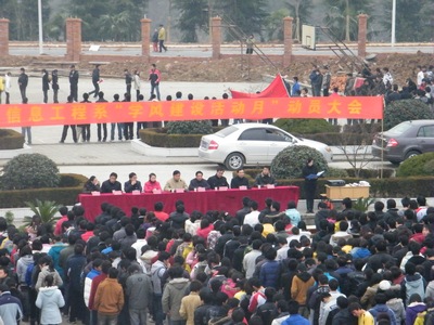 12月23日下午,信息工程系在学院操场召开学风建设月活动动员大会,系总支书记梁继会、主任黄存东、副主任付贤正、主任辅导员王文堂、团总支书记张伟业、年级辅导员刘严杨旄袤、教学干事戴泽淼及全体在校学生参加了会议.