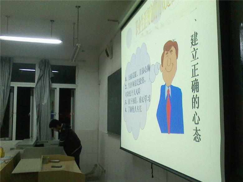 培训主要从职业规划、职业定位、职业原则、职业素质结构等几个方面进行了讲解,突出强调在校大学生应该清楚自己想要干什么,适合干什么,能够干什么,鼓励大学生勤于思考,科学合理地规划自己的奋斗方向并努力朝着自己的目标奋斗。整个讲座中,同学们积极响应,现场气氛活跃。