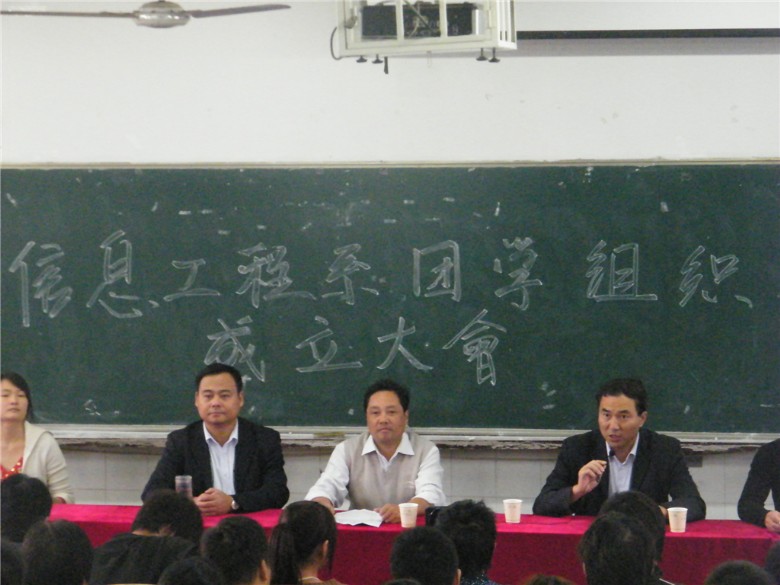 10月19日下午,信息工程系在1#111隆重举行第四届团学组织成立大会,大会由系办主任王文堂主持,系党支部书记梁继会、系主任黄存东、辅导员杨庆颖、周立卓、系学生会主席邹宇、系团总支副书记王迪等出席了大会,系团学组织成员及各班班委参加了大会。
