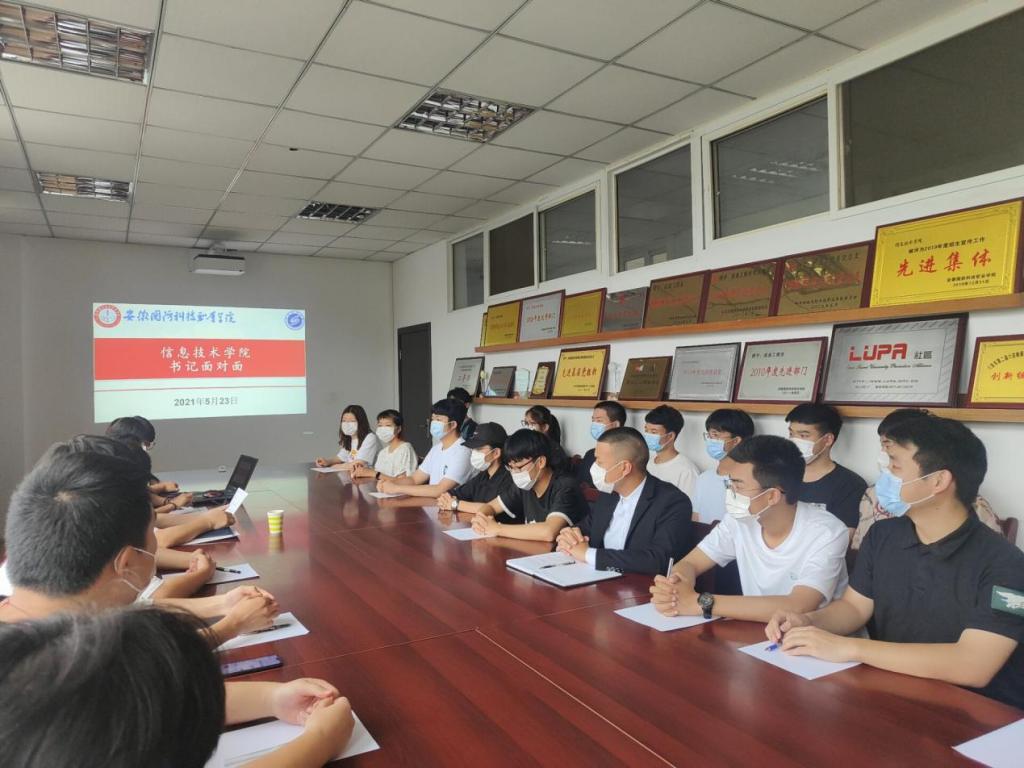 本网讯(信息技术学院)为深入贯彻落实校“两案八制”文件精神,做好疫情防控期间校园日常的管理工作,加深学院师生之间的沟通交流,听取学生对学院教育、管理等方面的意见和建议,及时解决存在的问题,改进学院工作。2021年5月23日下午4点,信息技术学院在知行楼304会议室召开“书记面对面”师生座谈会。信息技术学院学生会近30名主要学生干部参加会议,信息技术学院党总支书记孙武出席座谈会。会议由信息技术学院19级辅导员孙颖凯主持。
