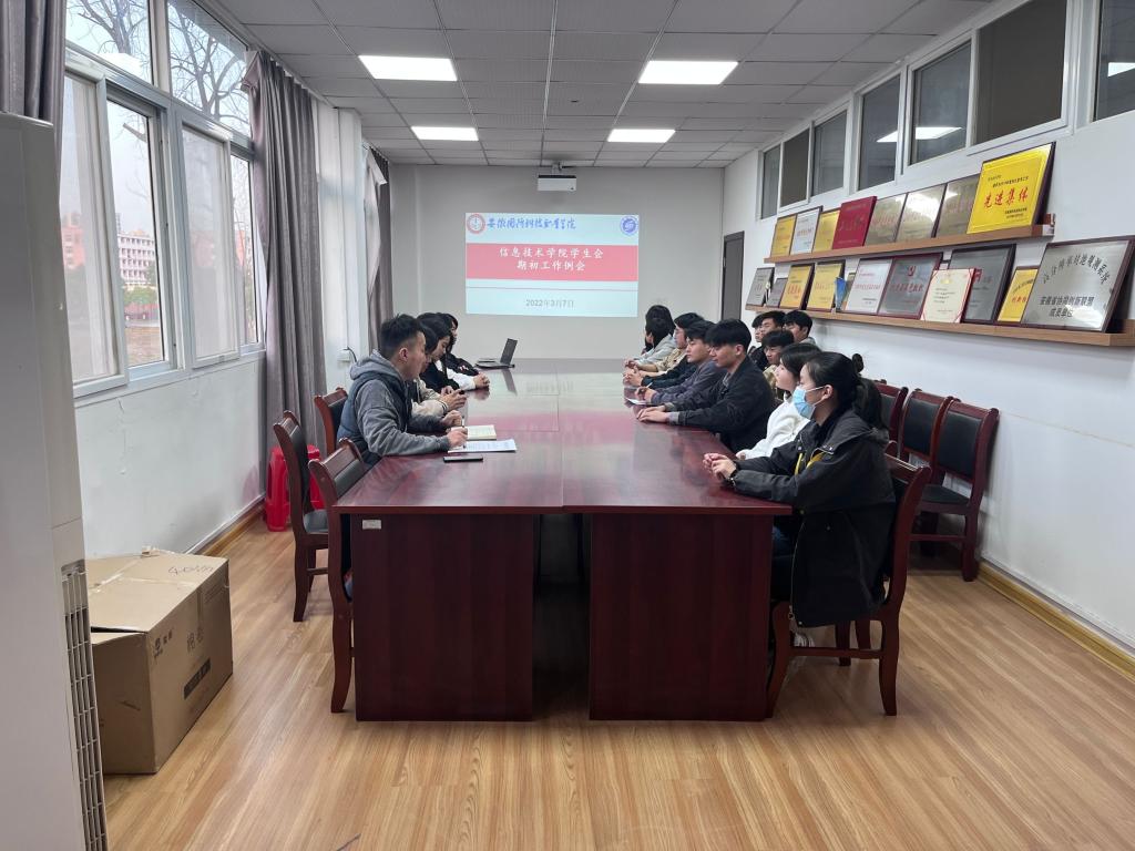 本网讯(信息技术学院 孙颖凯)为切实执行校、院共青团年度工作计划,进一步提高学院学生会各部门工作效率,信息技术学院于3月7日下午5点45分在知行楼304会议室召开学院学生会期初工作例会。信息技术学院团总支书记孙颖凯参加并主持会议,学院学生会轮值主席团成员、各部门负责人参会。